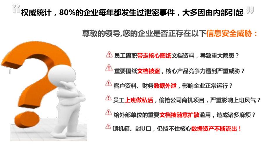加密系統(tǒng)集身份認(rèn)證與權(quán)限管理、U盤管控、打印控制、程序控制、日志監(jiān)控、自動(dòng)備份、外發(fā)文件控制等多功能模塊于一體的反商業(yè)泄密系統(tǒng)軟件,是國內(nèi)最先進(jìn)、最穩(wěn)定、最安全的解決信息安全泄密問題的方案。